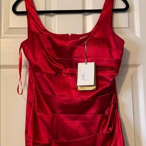 Chiara Boni La Petite Robe satin cocktail dress with ruching through bodice and skirt. Sheath silhouette fully lined. sleeveless, Hem hits about at the knee.Nylon/spandex.Made in Italy. measurement waist 39cm, chest 48cm length 94 cm