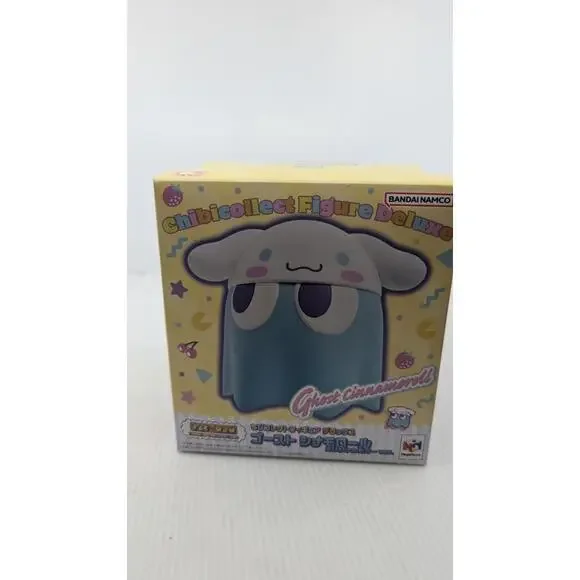 Chibicollect Figure Deluxe featuring Ghost Cinnamoroll character. This collectible figure is approximately 330% scale up from the original design, perfect for display. Comes in original packaging with vibrant and playful design. A great addition for fans and collectors alike.