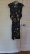 This chic silk, sleeveless dress features a captivating pattern in shades of black, blue, yellow and brown. It has slightly padded shoulders and an elastic waist for added comfort.