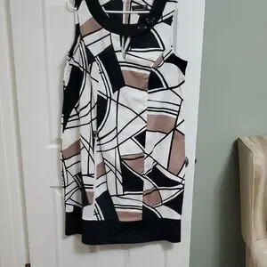 Elevate your wardrobe with this chic midi dress featuring an abstract pattern. The stylish black and cream design is perfect for any occasion.