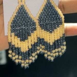 Elevate your style with these chic black and yellow beaded earrings. Perfect for adding a bold touch to any outfit.