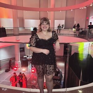 This chic black mini dress is adorned with butterfly accents, offering a stylish look for any event. The sheer sleeves enhance its elegance, making it a perfect choice for evening outings.