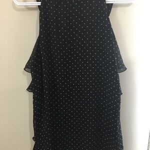 This stylish black tank top features a playful polka dot pattern and a trendy tiered design. Perfect for adding a touch of elegance to your casual wardrobe.