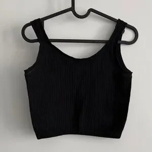 Step up your fashion game with this chic black ribbed crop top. Ideal for casual outings, it combines comfort with a stylish edge.