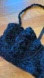 This chic black rose lace bralette with medium padded cups and more of a Demi cut. This would look so beautiful peeking out under a blouse. Rosette detailing of the straps. The back half of the straps are adjustable. Size 36B