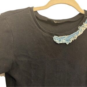 Elevate your style with this chic black top featuring trendy denim details. Perfect for a modern, casual look.