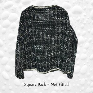 Chic Black/White Tweed Jacket with Gold-Threaded Piping – Size M - NWOT