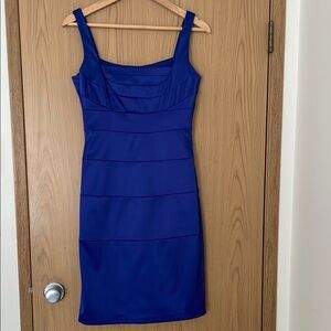 This chic blue midi dress is designed to make a statement with its vibrant color and flattering silhouette. Perfect for a night out or a special occasion, it offers a stylish and modern look that is both comfortable and eye-catching.