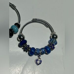 Stylish charm bracelet set in blue and silver hues. Ideal for enhancing any ensemble with a chic touch.