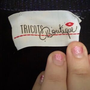 Elevate your style with this chic open front cardigan, featuring a striking color block design in black, purple, pink, and teal. Perfect for layering and adding a bold touch to any ensemble. Tricots St. Raphael: A vintage brand, known for men's and women's sweaters in the 1980s and 1990s, founded by Cecile Platovsky.