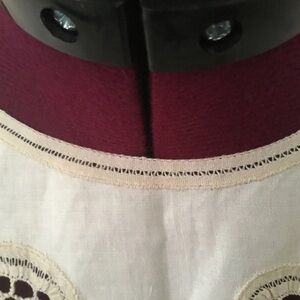Stylish lace collar featuring a classic button. Ideal for enhancing any outfit. Measures 20” around neckline Beautiful Battenberg lace finishes this Edwardian collar off. Please check pics out