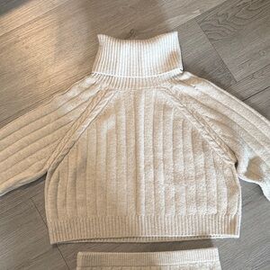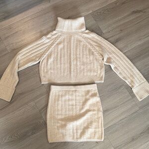 Elevate your style with this elegant cream ribbed knit skirt set. Perfect for any occasion, this set offers both comfort and sophistication. Brand new never worn.