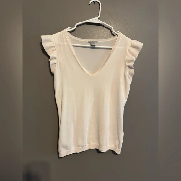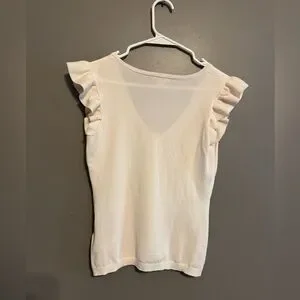 This chic cream top with ruffle sleeves adds a touch of elegance to your wardrobe. Perfect for both casual and formal settings.