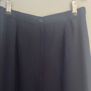 Elevate your style with this chic dark blue midi skirt. Perfect for versatile styling, it offers a sleek and timeless look. Size 8, 36 cm across the waist, 74 cm length