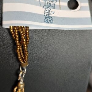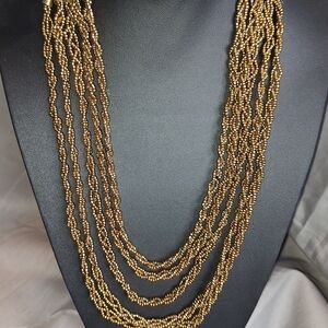 Enhance your style with this chic gold multi-strand necklace. Perfect for adding a touch of sophistication to any ensemble.