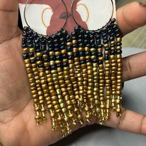 These chic earrings feature a stunning combination of gold and black beads, perfect for adding elegance to any outfit.
