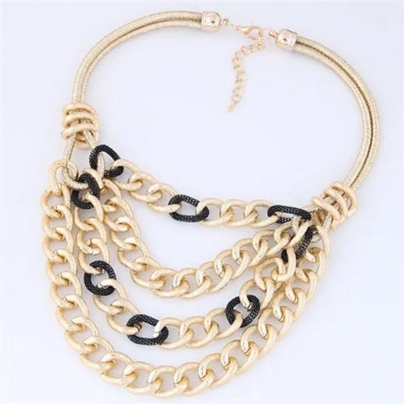 Elevate your style with this chic gold and black layered necklace. Perfect for any occasion, it adds a touch of sophistication to your ensemble.