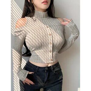 Elevate your wardrobe with this stylish and versatile high-neck long-sleeve tee. Crafted for both comfort and elegance, this piece is perfect for autumn and winter casual outings, gatherings, vacations, or dates.
