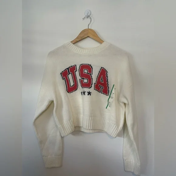 Chic Off-White sweater with bold USA graphic. Cozy and stylish for any casual day. Brand new with tags.