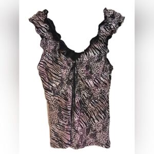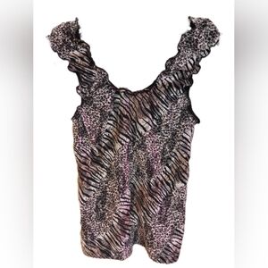 Elevate your style with this chic leopard print tank top, featuring elegant ruffle details. Perfect for a bold and fashionable look.