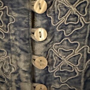This chic light blue blouse features elegant embroidery and a stylish button-up design. Perfect for a sophisticated look.