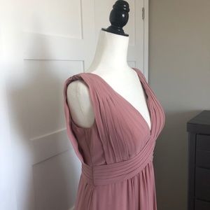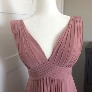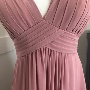 Step into pure elegance with this stunning long blush gown, perfect for prom, evening events, or as a bridesmaid dress. The exquisite pleating and draping create a silhouette that's both uber elegant and effortlessly chic. This dress feels like wearing pure sexiness, making you the star of any occasion. A must-have for those who want to make a lasting impression with timeless style!" (A5)