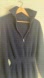 This chic navy knit dress features long sleeves and a stylish zip-up collar, perfect for versatile wear.