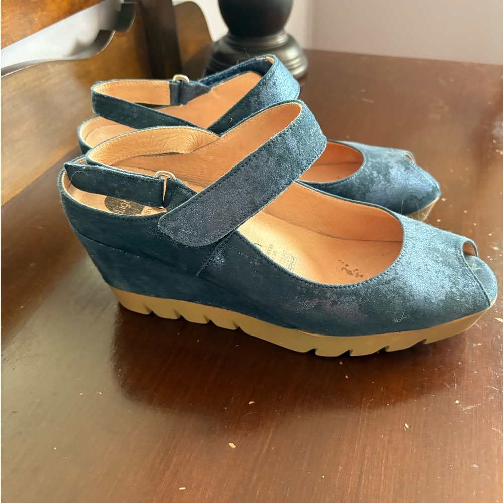 Step out in style with these chic navy wedge sandals. Perfect for adding a touch of elegance to any outfit.