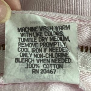Designed and Made by Chic. Made in USA .... Pale pink in colour these denim jeans make a nice change from the typical blue jeans for spring/summer.