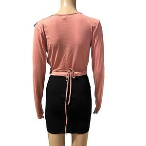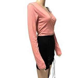 Elevate your style with this trendy outfit featuring a soft pink wrap crop top . The wrap design adds a flattering touch, while the long sleeves keep you comfortable in any season. Perfect for a night out or casual outings, this ensemble balances sophistication and playful elegance. - Flattering wrap design - Soft, breathable fabric - Versatile for various occasions - Easy to mix and match with other wardrobe staples.
