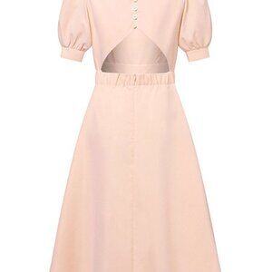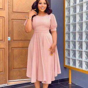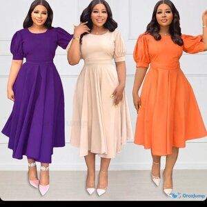 Chic Puff Sleeve A-Line Midi Dress Women's Size S, M, L, XL