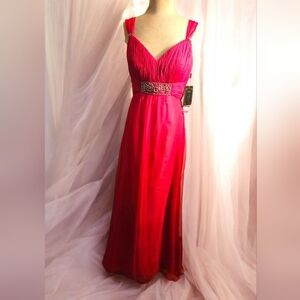 Chic Red Maxi Dress with Embellished Waist, Size 12