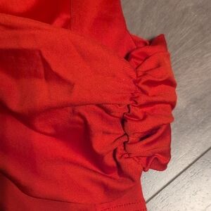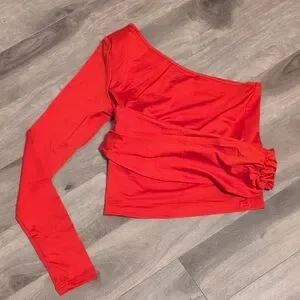 Elevate your style with this chic red one-shoulder top. Perfect for making a bold statement.