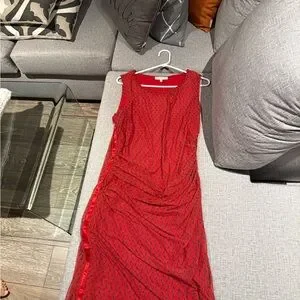 Step out in style with this chic red patterned maxi dress. Perfect for any occasion, its vibrant hue and elegant design make it a standout piece.