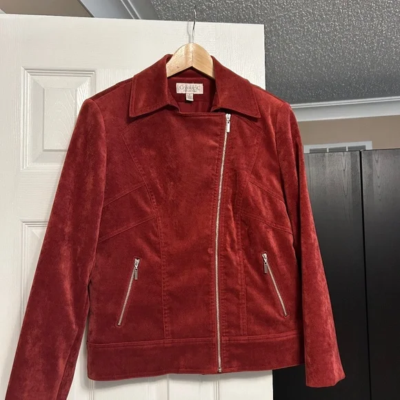 Add a bold pop of colour to your wardrobe with this stunning red suede-look jacket! Perfect for fall layering or making a statement year-round, this piece combines the luxurious feel of suede with the ease of care and wearability.