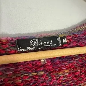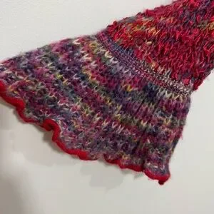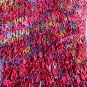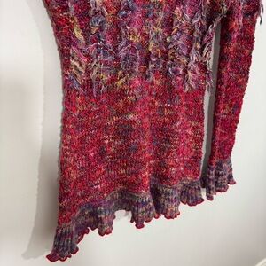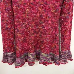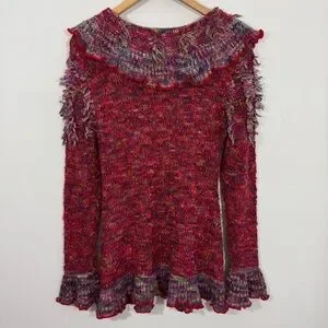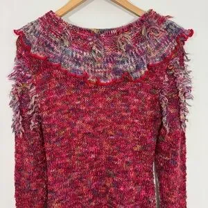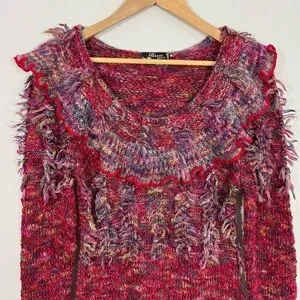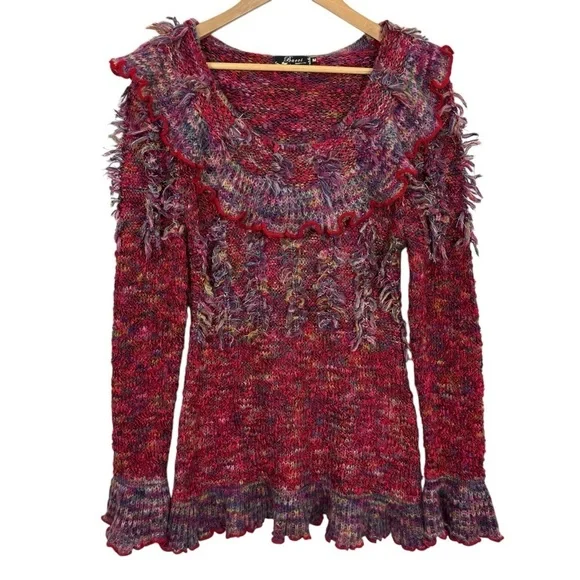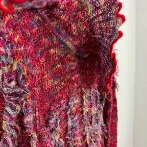 Add a pop of color to your wardrobe with this funky ruffled knit sweater. Love this artsy piece but it’s too big for me.