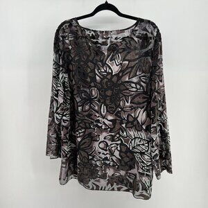 🖤Chic Sheer Burnout Velvet Blouse by Additions by Chico's Black Brown Size 3🖤
