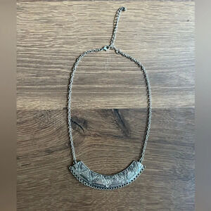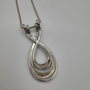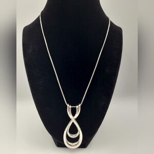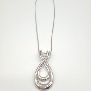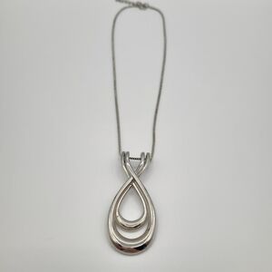 This chic silver tone necklace features a stunning pendant design, perfect for adding elegance to any ensemble.