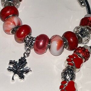 This chic bracelet set features vibrant red beads and elegant silver accents, perfect for adding a stylish touch to any ensemble.