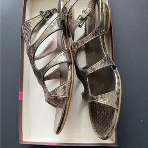 Elevate your look with these chic snakeskin patterned sandals. Designed for style and comfort, they are perfect for any occasion.