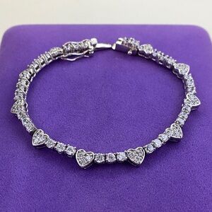 Enhance your style with this elegant silver heart CZ tennis bracelet. Perfect for any occasion, this bracelet add a touch of sophistication to your look. Listing is for one bracelet. Others available for sale in my closet.