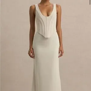 This chic cream strapless dress is perfect for any elegant occasion. Its sleek design ensures a flattering fit.
