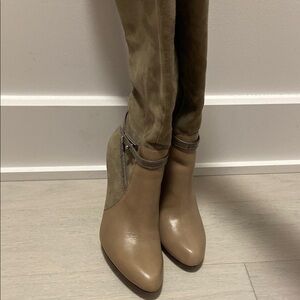 Elegant knee-high boots with a sleek design. Features a stylish buckle detail. Perfect for any occasion. Suede and leather 4 inch heel great condition