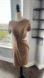 Elegant tan dress with a stylish twist front. Ideal for any event.