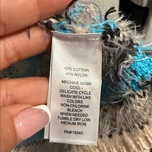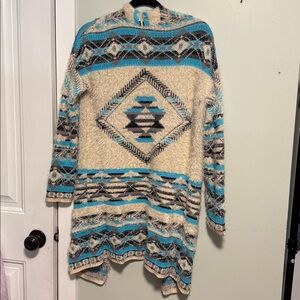Chic Tribal Pattern Cardigan duster - Blue and Cream - super soft - oversized Small