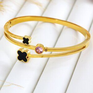 The polished stainless steel finish ensures durability and resistance to tarnish, making it perfect for both everyday wear and special occasions. Lightweight and comfortable, this bangle is designed for all-day elegance.