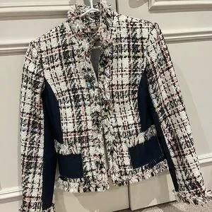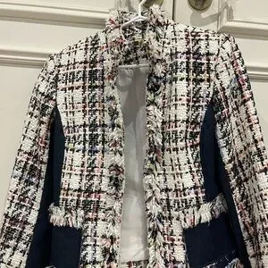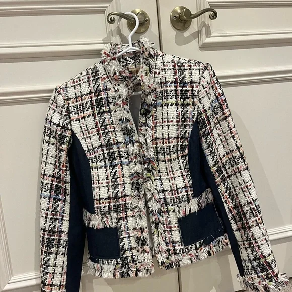 Elevate your style with this chic tweed jacket. Featuring a blend of multicolor tones, it's perfect for any occasion.