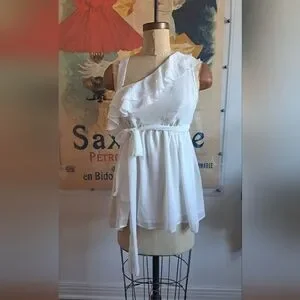 Elevate your style with this chic white blouse featuring elegant ruffles. Perfect for any occasion, its soft fabric ensures a comfortable fit.