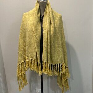 Elevate your style with this chic yellow paisley wrap. Perfect for adding a pop of color to any outfit.