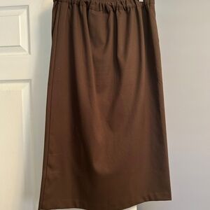 Crafted with a soft fabric and designed with a flattering wrap silhouette, this skirt is perfect for effortless styling. The rich brown tone makes it a versatile piece for both casual and dressed-up looks. Pair it with a fitted top or chunky sweater for an elevated, modern vibe. Gently worn and in excellent condition.